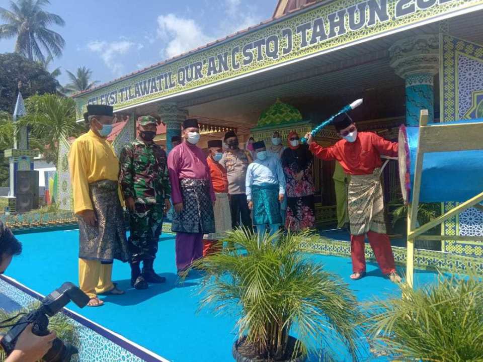 Secara resmi ia nyatakan bahwa Seleksi Tilawatil Qur’an Tingkat Kecamatan Galang ini resmi dibuka ditandai dengan Pemukulan Beduk.