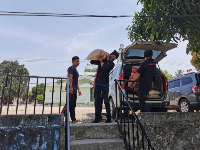 KARIMUN – Belasan wartawan menggotong bahan pokok ke sejumlah panti asuhan dan pondok pesantren di Kabupaten Karimun.