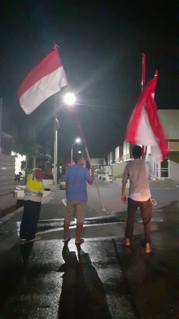 BATAMCLICK.COM: Warga cluster peony botania 1 kelurahan Belian, Kecamatan Batam Kota, sejak di canangkan pemerintah Kota Batam terkait pemasangan bendera per 1 Agustus sd 31 Agustus, sudah di laksanakan warganya, Badan Pengelola Lingkungan (BPL) Cluster Peony sebagai pengelola lingkungan setempat mempunya cara unik agar warganya memasang bendera yakni dengan pengadaan tiang dan bendera yang di pajang di depan pos skurity, yang menariknya lagi tim BPL Cluster Peony memberikan pelayanan pemasangan secara gratis, alhasil sekitar 100% warga Cluster Peony telah memasang Bendera, terkecuali rumah yang tak berpenghuni alias rumah kosong yg velun teejual developer. Untuk harga bendera tim BPL mematok harga 25.000 untuk bendera dan 25.000 untuk tiangnya.