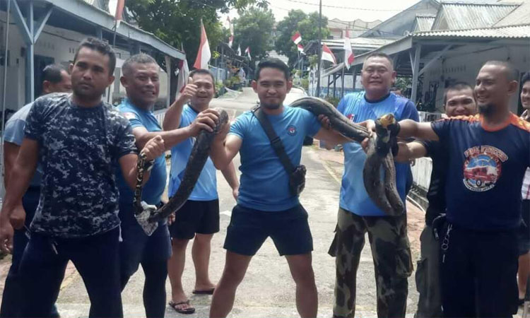 Heboh! Ular Piton 4,2 Meter Tertangkap di Perumahan Lanal Karimun