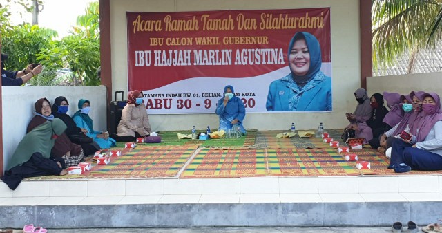 BATAMCLICK.COM: SOSIALISASI pentingnya protokol kesehatan tak pernah Hj Marlin Agustina lupakan dalam setiap kesempatan silaturahmi dengan warga.