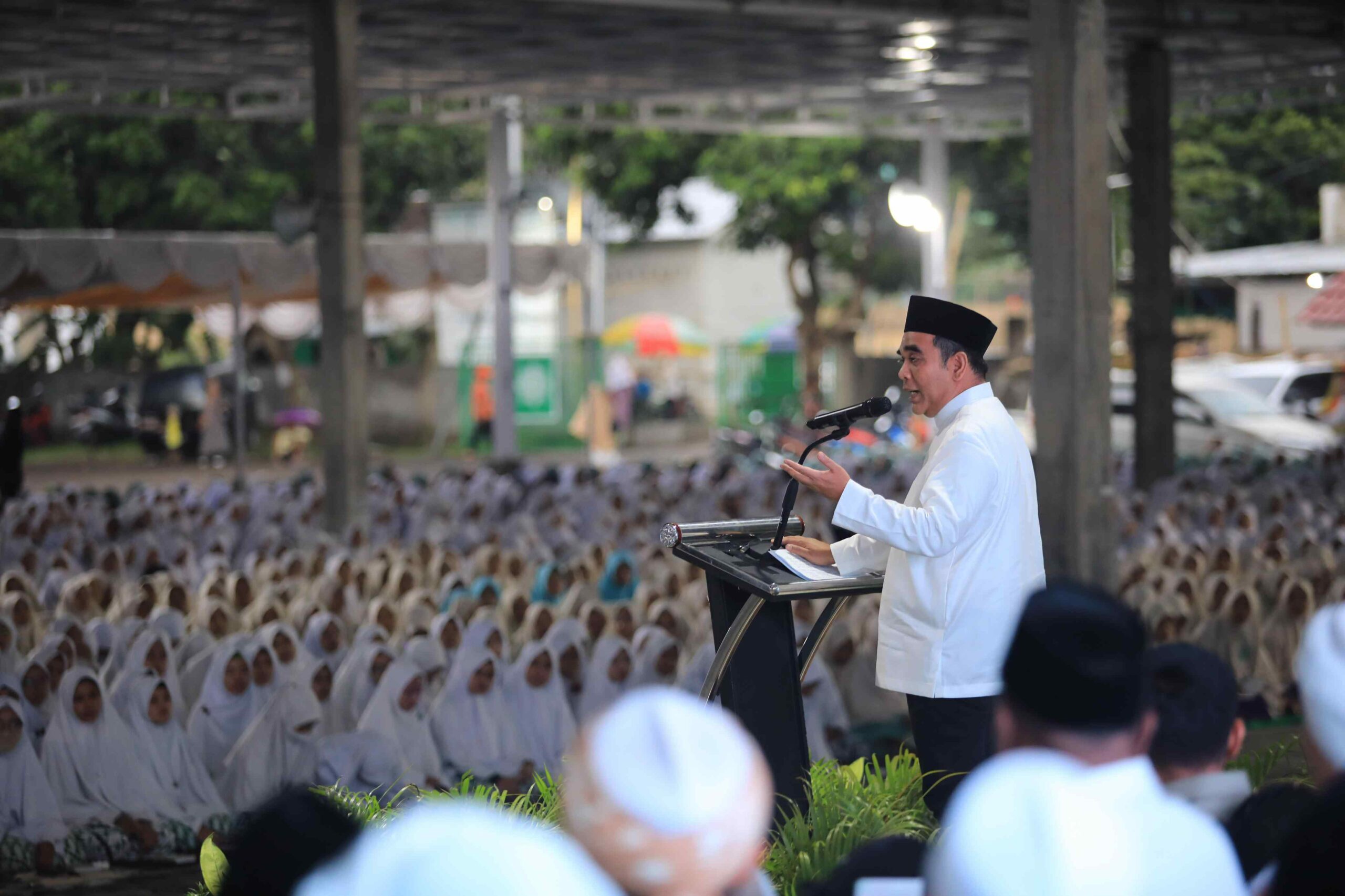 Sekjen Gerindra Ahmad Muzani bersilaturahmi ke pondok pesantren Nahdlatul Wathon, Lombok, Nusa Tenggara Barat, Jumat (1/12). Di hadapan ribuan santri, Muzani memaparkan apa yang menjadi program prioritas Prabowo-Gibran jika terpilih dalam Pilpres 2024 mendatang.