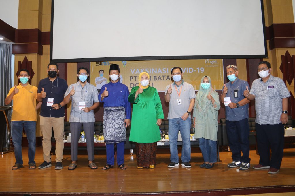 Batam – Sebanyak 1.139 pegawai bright PLN Batam disuntik vaksin Covid-19, Sabtu (3/4/2021). Vaksinasi tersebut ditinjau langsung Wali Kota Batam, Muhammad Rudi dan dihadiri Wakil Gubernur Kepri, Marlin Agustina.