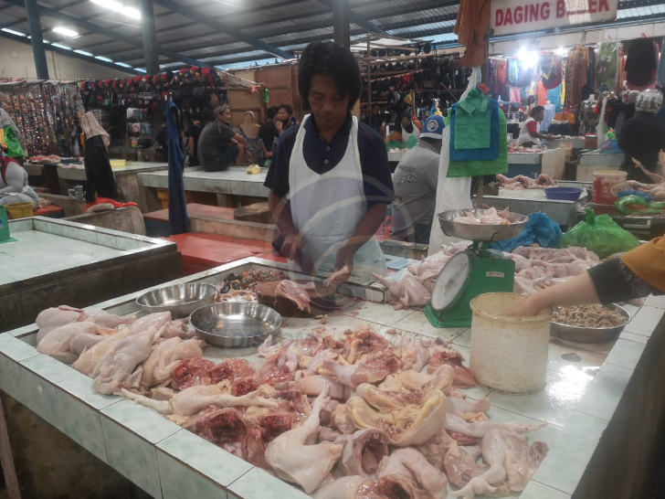 Pedagang daging ayam segar, Agus, di Pasar Bintan Centre Tanjungpinang, Kamis (01/4/2021), mengatakan, harga daging ayam segar Rp38.000/kg, tidak mengalami perubahan sejak sebelum pandemi Covid-19 sampai sekarang.