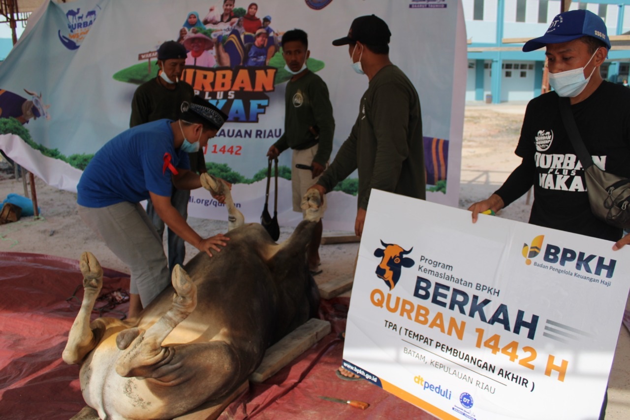 Badan Pengelola Keuangan Haji (BPKH) kembali bekerja sama dengan Daarut Tauhiid (DT) Peduli Batam untuk menyalurkan hewan qurban kepada yang membutuhkan. Hewan Qurban yang disalurkan berupa satu sapi dan dibagikan kepada warga TPA Punggur, Teluk Waheng pada hari Rabu (21/07).