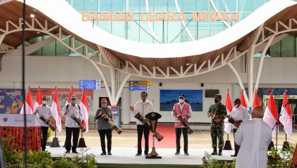MERAUKE – Presiden RI Joko Widodo hari ini, Minggu (3/10) bersama Menteri Perhubungan Budi Karya Sumadi meresmikan Terminal Baru Bandara Mopah di Kabupaten Merauke, Papua.