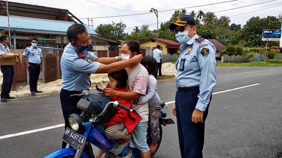 Selingga.com (03/11) Dabo. Lembaga Pemasyarakatan Kelas III Dabo Singkep bersama Imigrasi Kelas II Non TPI Dabo Singkep membagikan masker dan vitamin kepada warga pada Selasa (03/11) tadi di simpang empat Taman Makam Pahlawan (TMP) Dabo, Kabupaten Lingga. Kepala Imigrasi Kelas II Non TPI Dabo Singkep, Nayaka Duta Harahap, mengatakan kalau kegiatan tersebut merupakan kegiatan dalam memperingati ke-75 Hari Dharma Karya Dhika tahun ini.