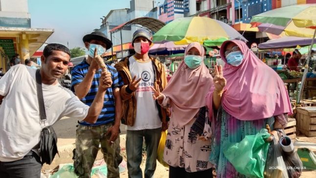 Suryani juga membagikan masker kepada para pedagang yang tidak memakai salah satu perlengkapan protokol kesehatan tersebut.