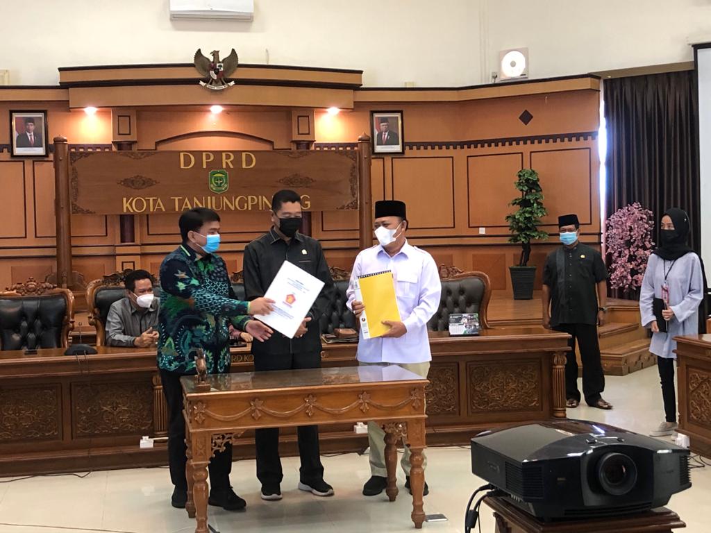 Tampak hadir calon wawako Ade Angga dan Endang Abdullah serta pimpinan partai pengusung di rapat tahapan pemilihan yang digelar Panlih anggota DPRD Kota Tanjungpinang, Selasa (4/5/2021).