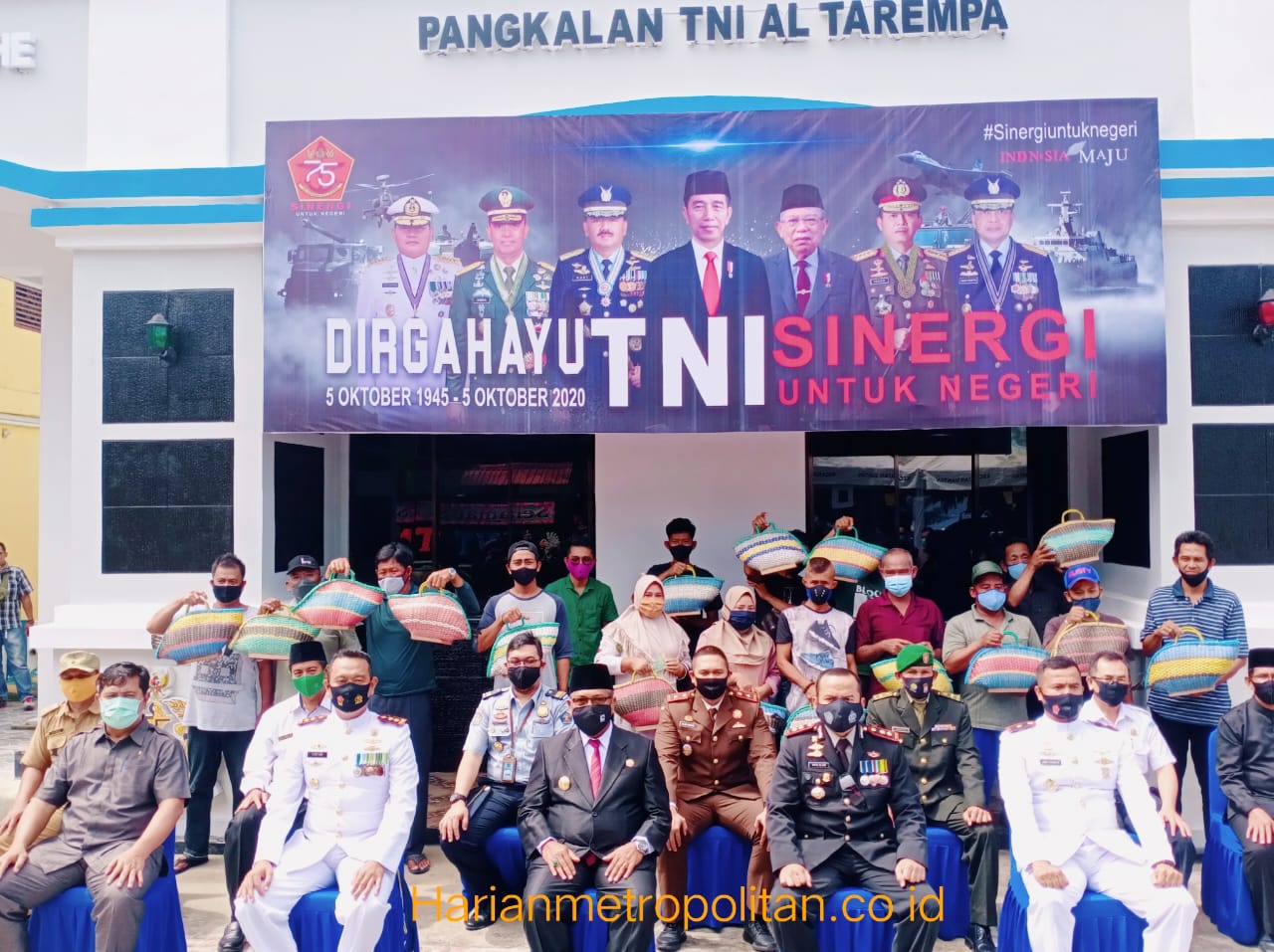 Anambas- HUT ke 75 TNI, TNI Angkatan Laut Tarempa melaksanakan apel bersama Presiden Republik Indonesia melalui vidcon diaula digedung Lanal Tarempa, Senin 5 Oktober 2020.