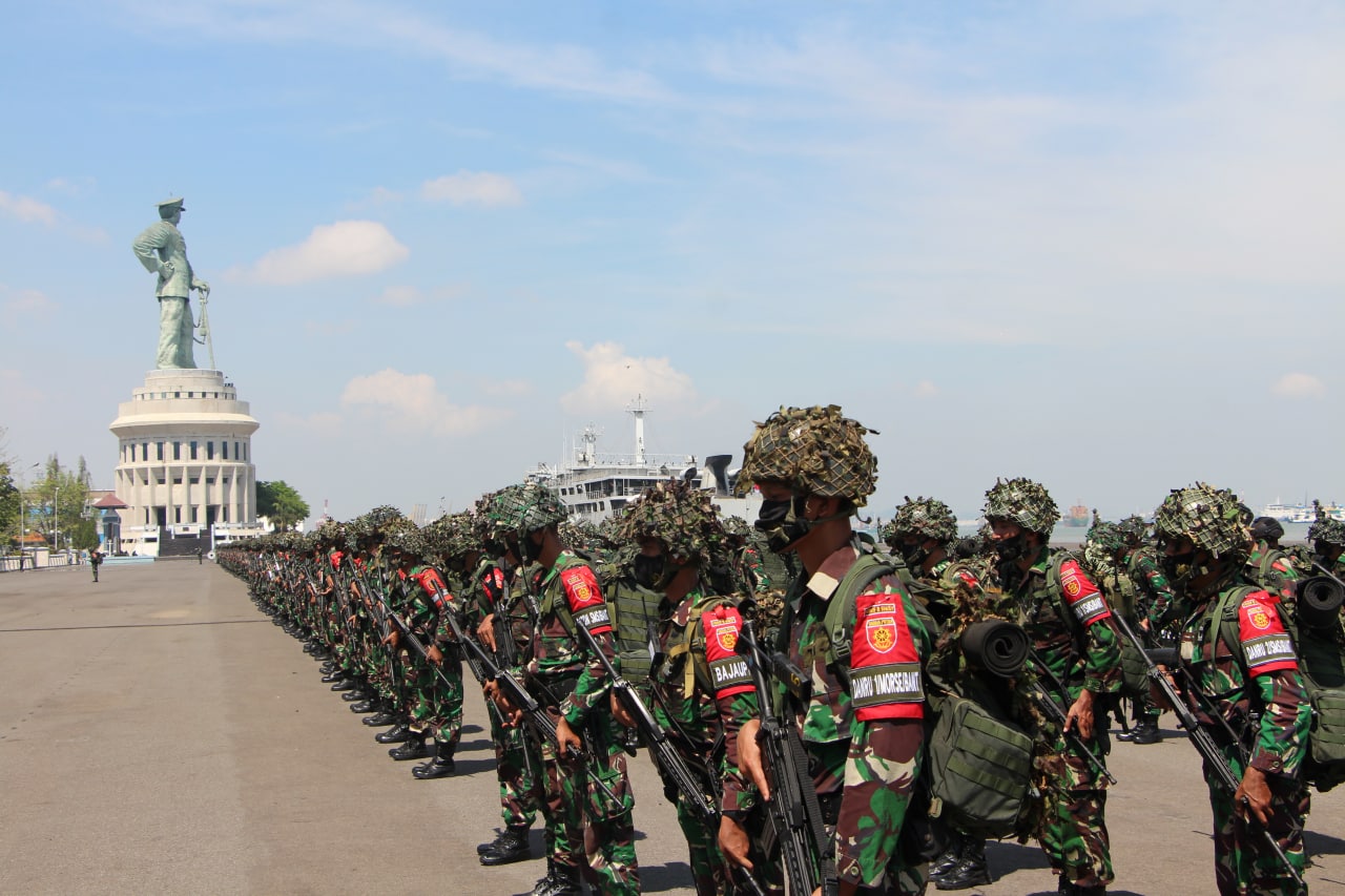 “Melalui latihan antar kecabangan, diharapkan dapat membangun kerjasama operasi (interoperabilitas) antar kecabangan TNI AD yang benar-benar terukur, efektif, efisien dan profesional. Muaranya, akan dapat melipatgandakan daya tempur dan daya gempur satuan manakala terlibat pertempuran yang sebenarnya,” kata Panglima Divisi Infanteri-2 Kostrad, Mayjen TNI Tri Yuniarto, S.A.P., M.Si., M.Tr (Han) saat melepas pelaku latihan di Dermaga Ujung, Makoarmada II, Surabaya, Kamis (5/11).