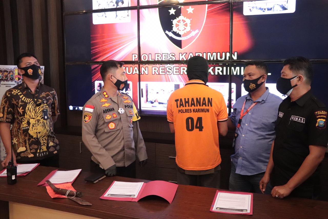 Pelaku berhasil diamankan saat berada di rumahnya yang beralamat jalan Telaga Harapan RT 07 RW 02, Kelurahan Sungai Lakam Barat, Kecamatan Karimun, Kamis (4/12/2020) sekitar pukul 23.30 WIB setelah satu jam kejadian.