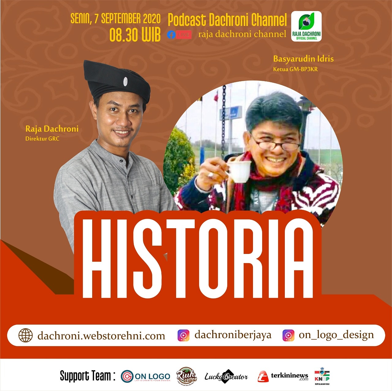 Bagaimana cerita perjuangannya, nantikan live streaming video podcast Raja Dachroni Channel bersama Ketua GM BP3KR Basyarudin Idris (Oom) Senin, 07 September 2020 Pukul 08.30 WIB.