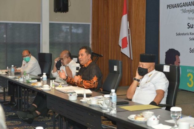 Penanganan Covid-19 dan Pemulihan Ekonomi Batam dengan tema Menjaga Kesehatan dengan Tetap Menjaga Ekonomi, Selasa (6/10) di Hotel Radisson, Batam. Hadir juga Pjs. Walikota Batam H. Syamsul Bahrum dan Plh BP Batam Purwiyanto.