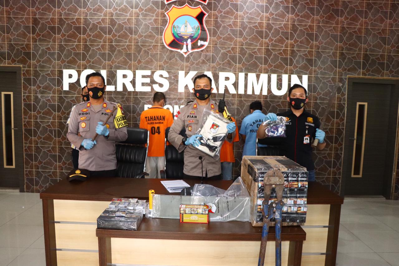 Karimun–Kapolres Karimun AKBP Muhammad Adenan, didampingi Kasat Reskrim, Kapolsek Meral dan Kapolsek Tebing melaksanakan konferensi pers kasus tindak pidana pencurian dan pemberatan, Senin 5 Oktober 2020.