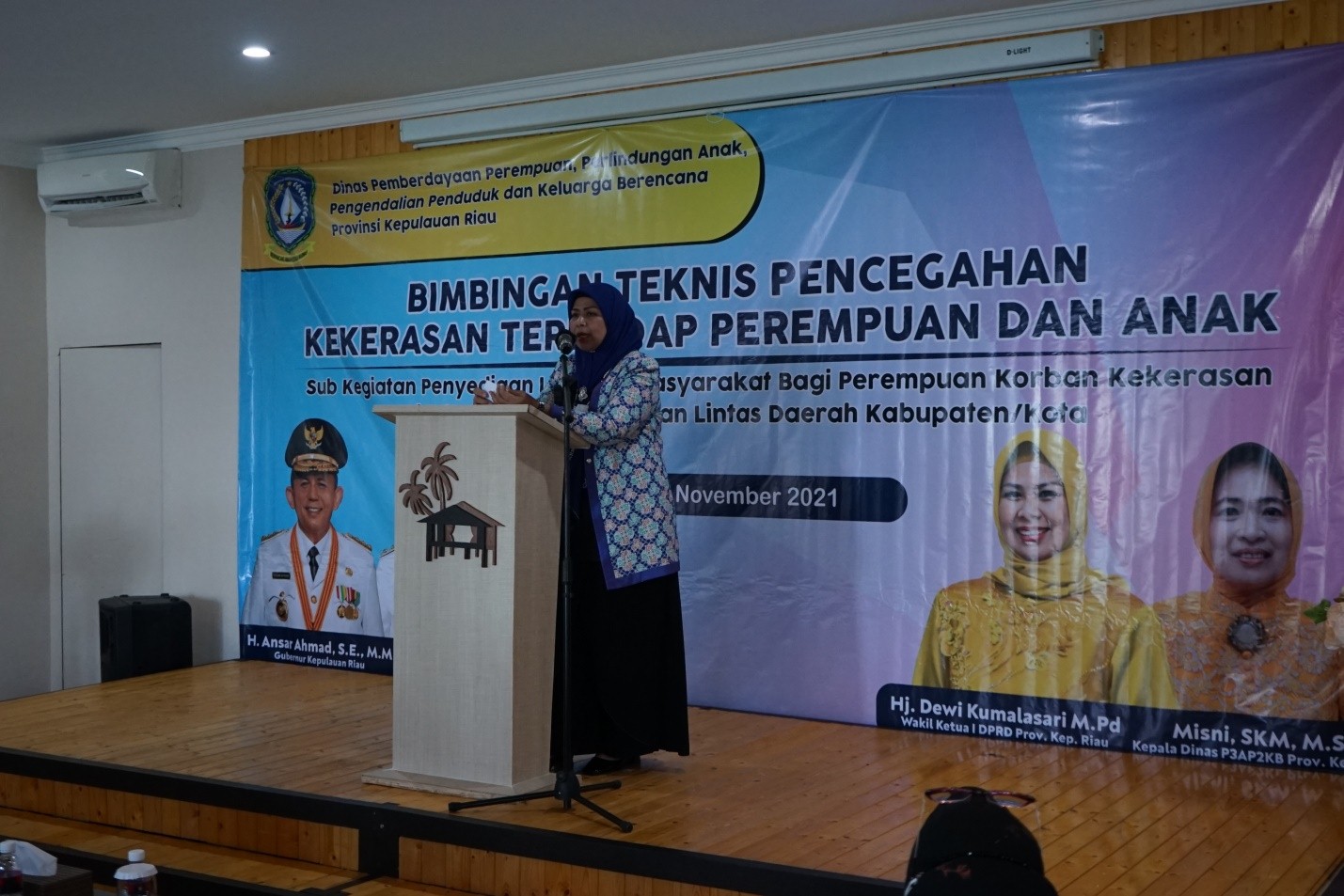 Untuk itu, Dinas Pemberdayaan Perempuan, Perlindungan Anak, Pengendalian Penduduk dan Keluarga Berencana Provinsi Kepulauan Riau menggelar Bimbingan Teknis Pencegahan Kekerasan terhadap Perempuan dan Anak selama 2 (dua) hari pada Kamis, 25 November 2021 di Bintan Spa Villa Beach Resort, Kabupaten Bintan. Kegiatan tersebut dihadiri 40 (empat puluh) orang peserta perwakilan aparatur desa dan tokoh masyarakat dari 20 desa di Kabupaten Bintan. Bimbingan teknis ini bertujuan untuk meningkatkan partisipasi masyarakat dalam upaya pencegahan dan penanganan dini terjadinya kekerasan terhadap perempuan dan anak. Hadir dalam acara pembukaan Pokja I Tim Penggerak PKK Provinsi Kepulauan Riau, Kepala DP3AP2KB Kabupaten Bintan Hj. Mardhiah, M.M, dan ketua panitia kegiatan Kepala Bidang Perlindungan Hak Perempuan DP3AP2KB Provinsi Kepulauan Riau Memi Loma, SE, M.Si. Sambutan sekaligus membuka acara secara resmi oleh Wakil Ketua I DPRD Provinsi Kepualuan Riau, Hj. Dewi Kumalasari, M.Pd.