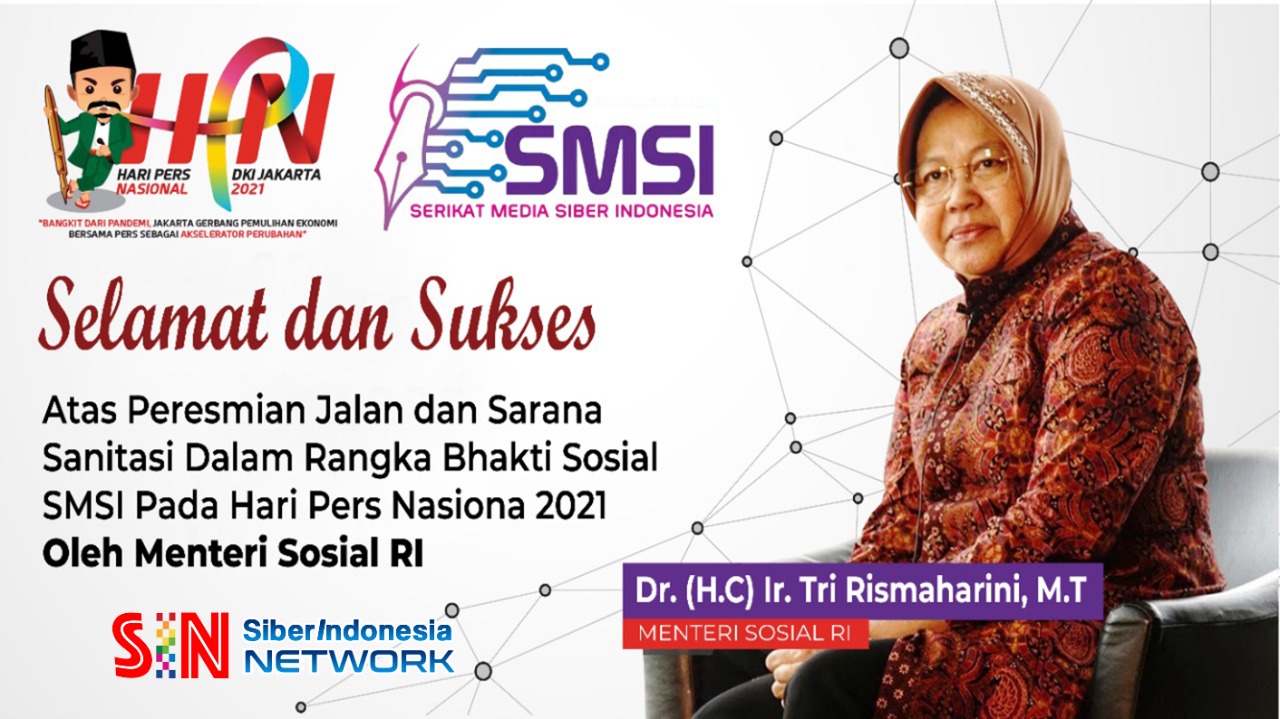 SERANG – Menteri Sosial (Mensos) Tri Rismaharini memuji program Bhakti Sosial Serikat Media Siber Indonesia (SMSI) karena organisasi pers ini membangun peradaban melalui membangun jalan dan sarana sanitasi dalam rangka Hari Pers Nasional (HPN) 2021.