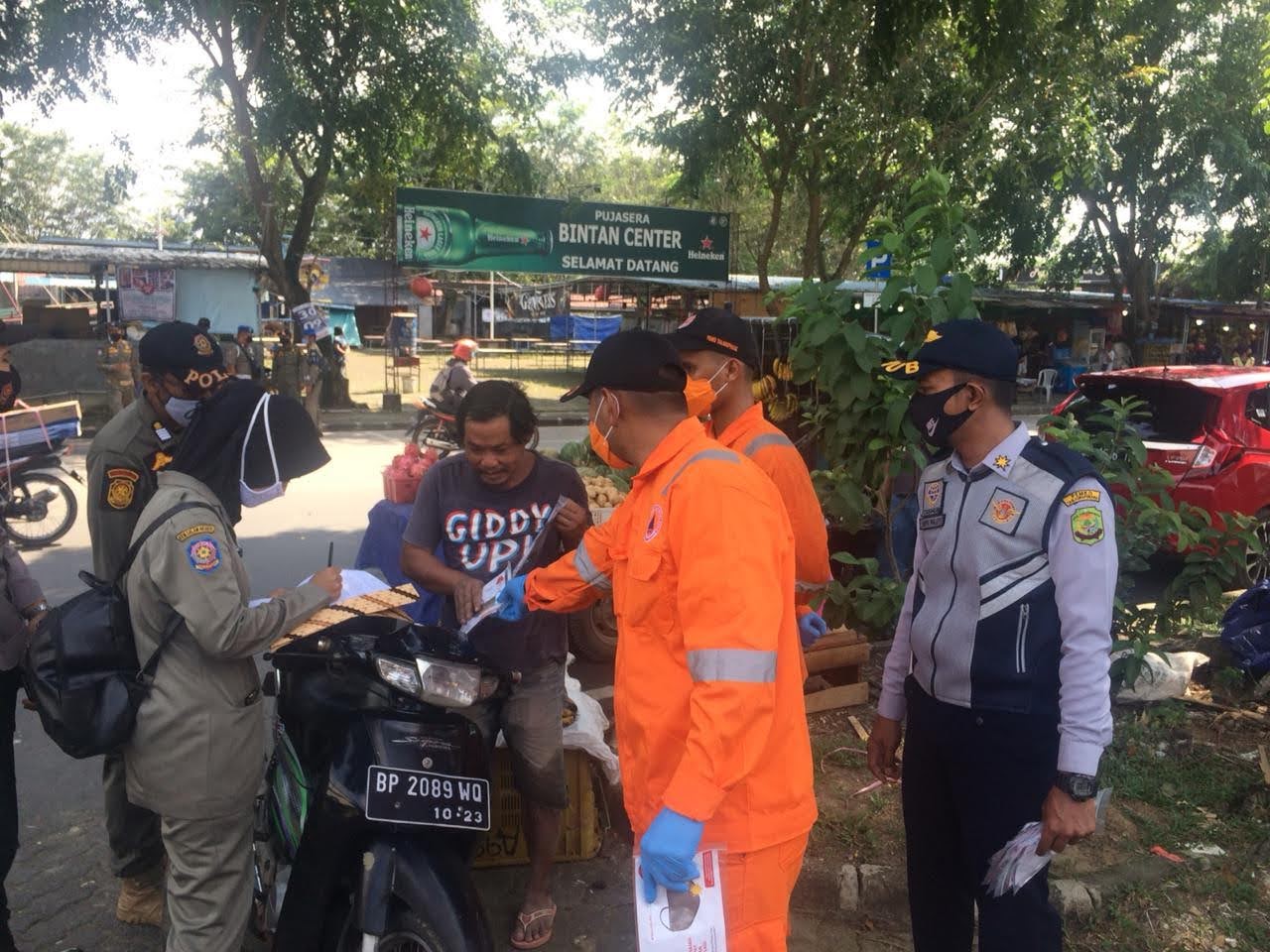 Pantauan di lapangan , kegiatan yang digelar di pasar dan pintu gerbang masuk Bintan Centre, beberapa warga yang melintas tidak menggunakan masker, baik pengendara roda dua maupun roda empat dihentikan petugas untuk diberikan edukasi dan dicatat indentitasnya. Setelah itu mereka diberikan masker oleh petugas.