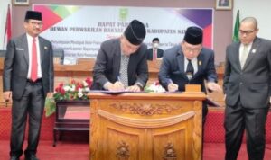 Penandatanganan dilakukan oleh Ketua DPRD Natuna, Daeng Amhar, Bupati Natuna, Wan Siswandi dan Wakil Ketua I DPRD Natuna, Daeng Ganda Rahmatullah. #Bds