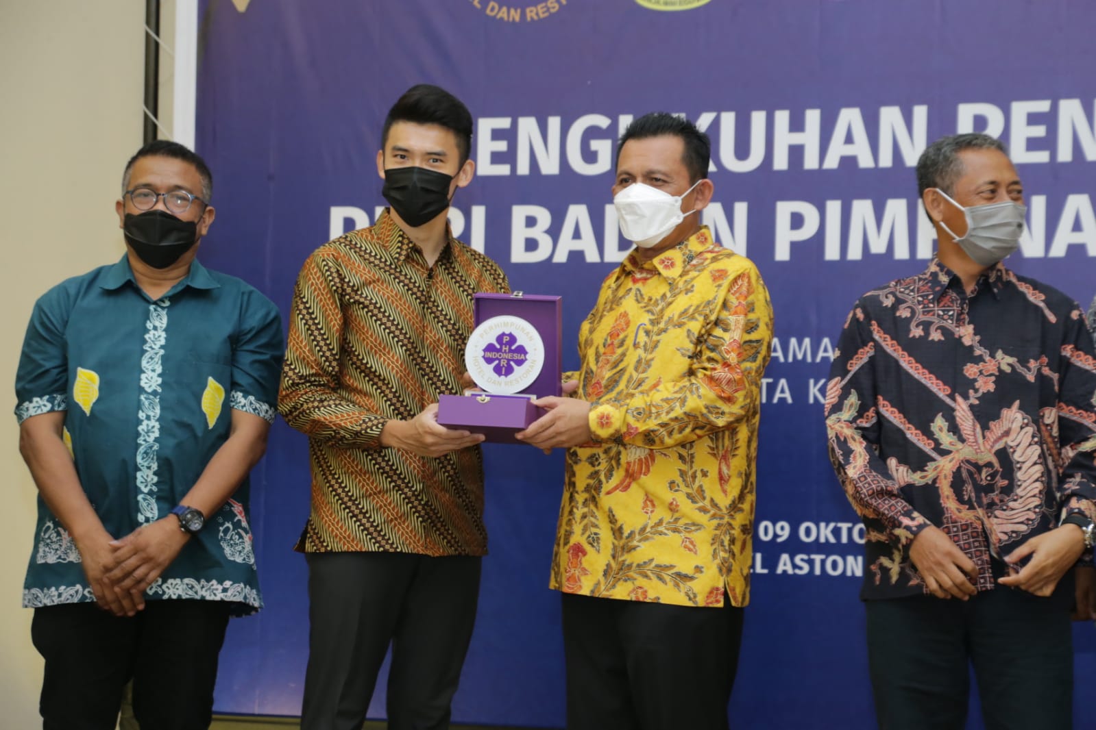 Gubernur Ansar Ahmad memberikan arahan usai menyaksikan Pengukuhan Pengurus PHRI ( Perhimpunan Hotel dan Restoran Indonesia) Badan Pimpinan Daerah Kepri, Sabtu (9/10) di Hotel Aston Batam. Ketua PHRI BPD Provinsi Kepri Jimmi Ho dikukuhkan oleh Ketua Umum PHRI Hariyadi B Sukamdani bersama pengurus lainnya untuk periode 2021-2026.