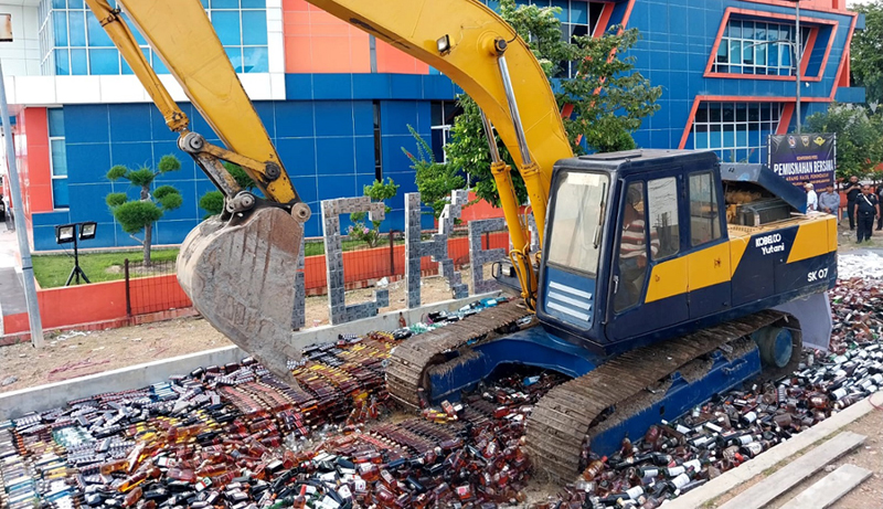 Pemusnahan digelar di halaman belakang Kanwil DJBC Khusus Kepri di Meral, Kabupaten Karimun dengan cara digilas menggunakan alat berat.