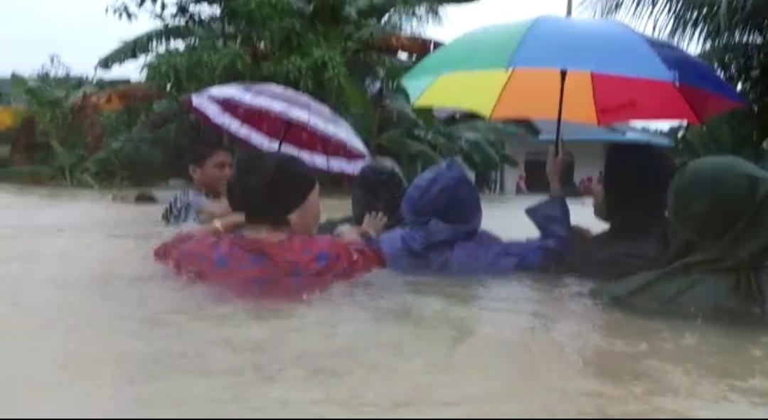 Daerah lain yang Banjir juga terpantau di simpang Ceruk Ijuk Toapaya, Km 32 Cikolek serta beberapa lokasi di Desa Toapaya.