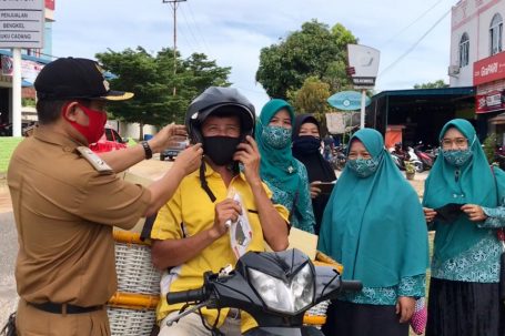 Dalam pembagian masker saat itu, Agustiar mengatakan kalau pembagian dilakukan sekitar Wisma Ria, wilayah kelurahan, dan pemukiman melalui program yang ada di desa-desa.