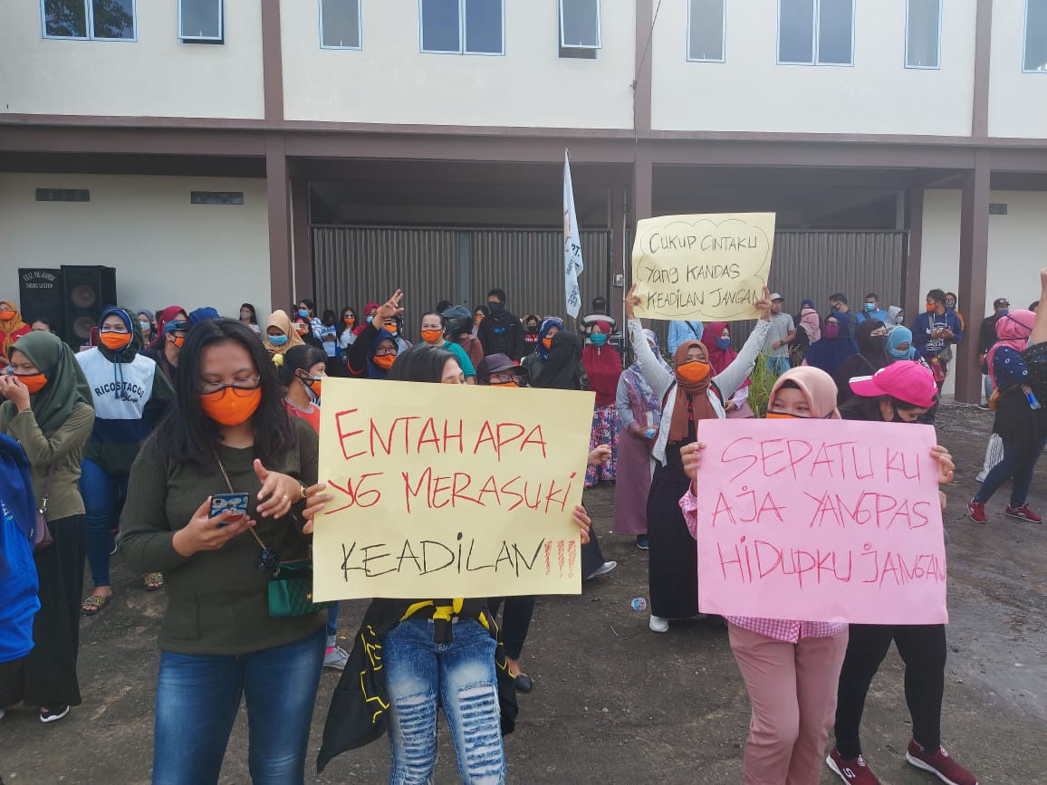 Mereka berorasi didepan pos pintu I KIB Lobam dengan pengawalan ketat dari aparat kepolisian.