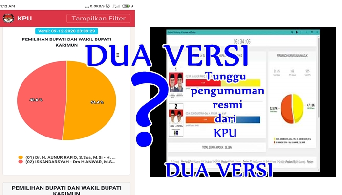 Berita sebelumnya pasangan Bersinar sudah mengklaim kemenangan atas perolehan suara yang unggul sekitar 1.332 suara dibandingkan dengan suara ARAH, Klaim kemenangan langsung disampaikan oleh Calon Bupati Karimun,Iskandarsyah melalui konfrence pers.