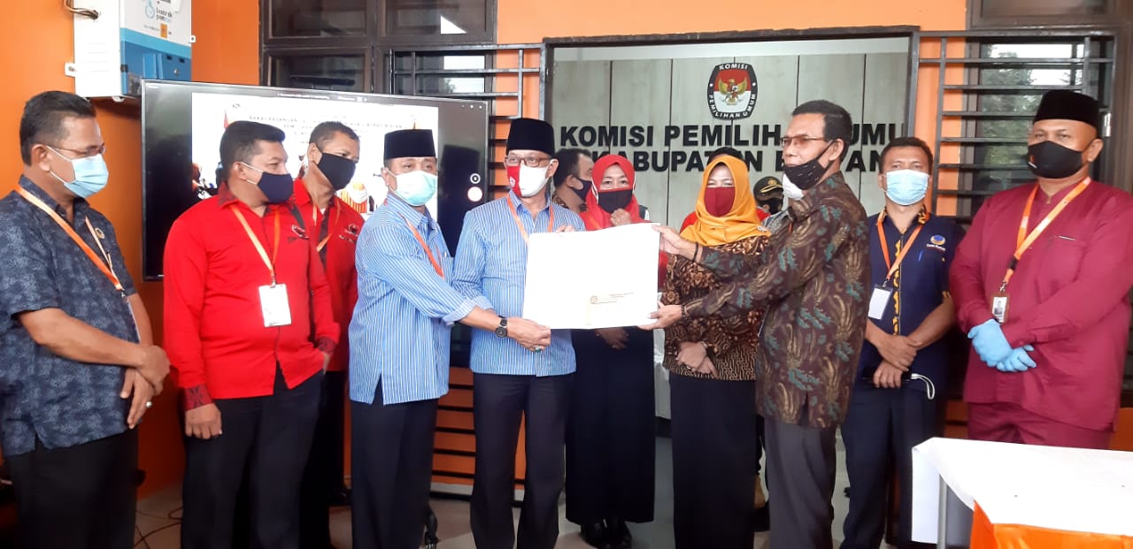 BINTAN – Lebih dari 8 jam, akhirnya KPU Bintan menyatakan berkas pendaftaran bakal pasangan calon Alias Wello – Dalmasri Syam (AWe-Dalmasri) lengkap saat mendaftar di hari pertama masa perpanjangan pendaftaran di Kantor KPU Bintan, Jum’at (11/9) sore.