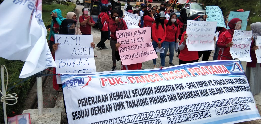 TANJUNGPINANG – Karyawan PT Panca Rasa Pratama yang tergabung dalam Serikat Pekerja Metal Indonesia (SPMI) kembali menggelar unjuk rasa di depan kantor produksi PT Panca Rasa Pratama, Jum’at (11/9).
