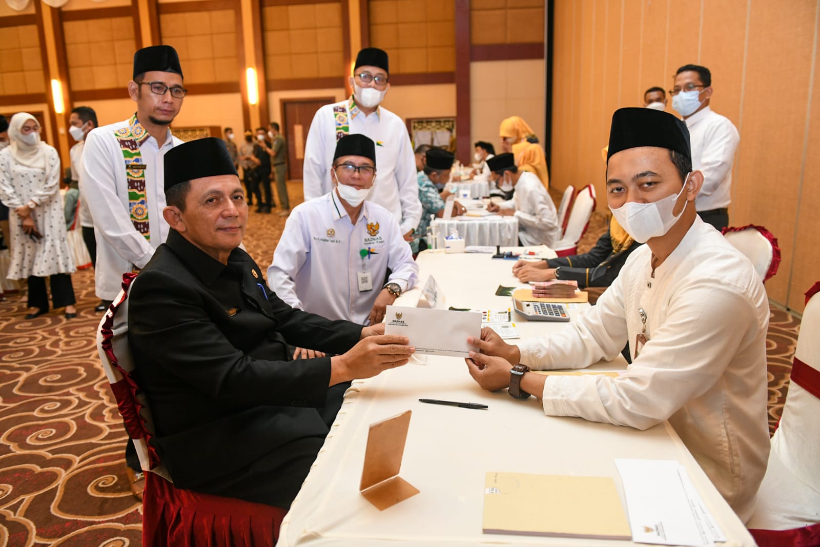 TANJUNGPINANG – Gubernur Kepulauan Riau Ansar Ahmad bersama Pimpinan FKPD, Pimpinan OPD, dan Direksi BUMD Provinsi Kepri kompak ramai-ramai bayar zakat melalui Badan Amil Zakat Nasional (Baznas) Provinsi Kepri di Aula Wan Seri Beni, Dompak, Selasa (12/4).