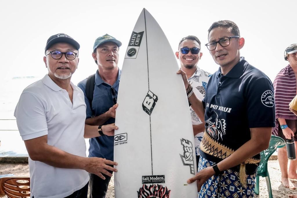 “Menurut saya pesisir barat ini sangat berpotensi dan menjadi daya tarik sangat natural, dan ini bisa menjadi cabang olahraga yang kita unggulkan, sehingga ini bisa berdampak pada terbukanya lapangan kerja,” ujar Menparekraf Sandiaga.