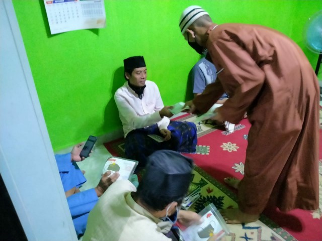 Masker dibagikan kepada semua jamaah yang hadir, baik yang belum menggunakan pada saat itu, maupun yang telah menggunakan.
