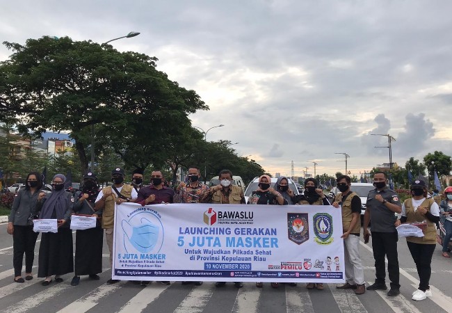 “Kegiatan ini adalah bagian dari partisipasi Bawaslu Kepulauan Riau (Kepri) bersama dengan tujuh (7) Bawaslu Kabupaten dalam rangka mensukseskan program Pemerintah Provinsi (Pemprov) yaitu launching 5 Juta Masker yang hari ini secara resmi dilaunching oleh Menteri Dalam Negeri (Mendagri), Bapak Muhammad Tito Karnavian,” ujar Koordinator Divisi Hukum, Humas, dan Data & Informasi Bawaslu Provinsi Kepulauan Riau, Indrawan Susilo Prabowoadi yang didampingi Ketua Bawaslu Batam, Syailendra Reza Irwansyah ketika diwawancarai sejumlah awak media usai melaksanakan pembagian masker di Jalan Laksamana Bintan, tepatnya di traffic light di Simpang Gelael, Sungai Panas, Kota Batam, Selasa (10/11/2020) sore, sekira pukul 16.05 WIB.
