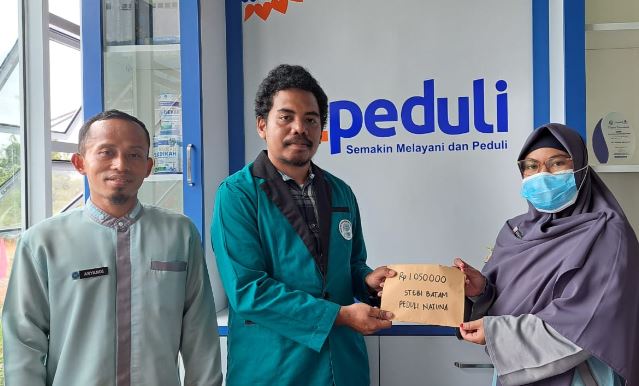 ​​​​​​​BATAM – Mahasiswa Sekolah Tinggi Ekonomi Bisnis Islam (STEBI) Batam menyerahkan donasi untuk korban bencana longsor Natuna kepada Lembaga Amil Zakat Nasional (LAZNAS) DT Peduli Kepri (13/03/2023). Donasi tersebut diserahkan oleh perwakilan Mahasiswa STEBI Batam, Saiful K. Teibang kepada Kepala Cabang DT Peduli Kepri, Asrifa Rahma.