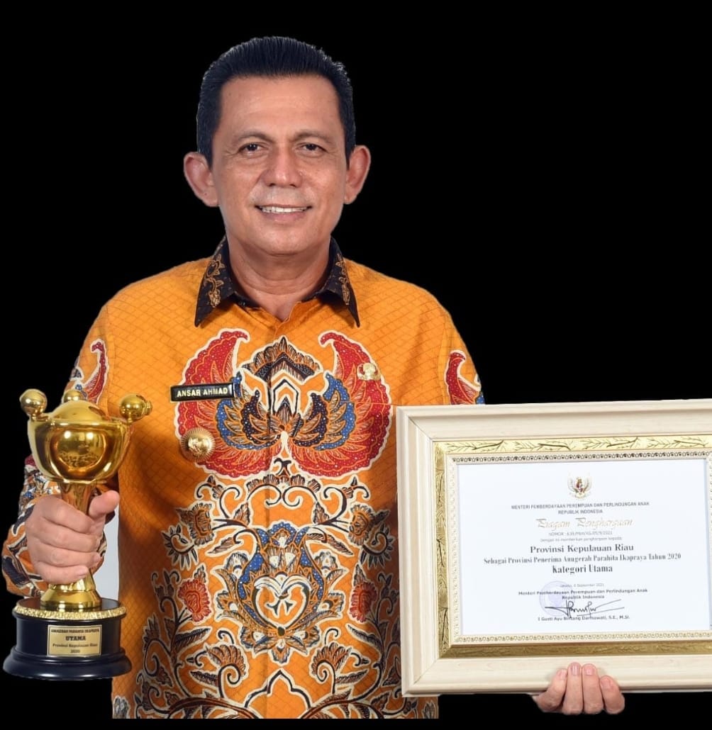 Tahun 2021 ini Penghargaan APE Kategori Utama diserahkan langsung oleh Kementerian Pemberdayaan Perempuan dan Perlindungan Anak Republik Indonesia ke Gubernur Kepulauan Riau H. Ansar Ahmad SE MM secara virtual, Rabu (13/10).