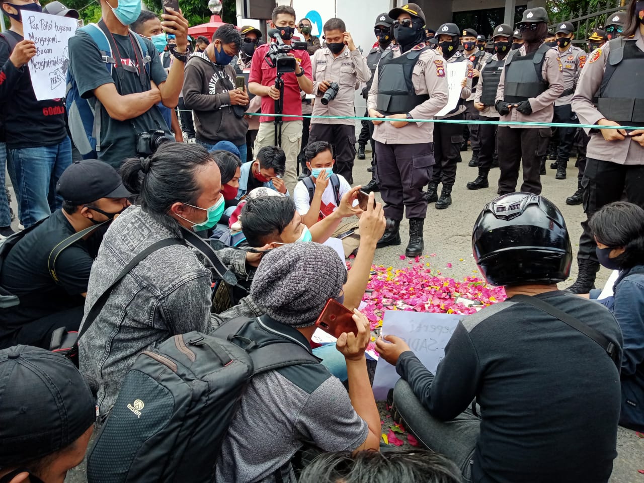 Puluhan wartawan dari berbagai media ini melakukan Aksi Damai yanh dilaksanakan pada dua titik, yakni Bundaran Hulondalo Indah Kota Gorontalo, yang kemudian berlanjut di depan Mapolda Gorontalo pada, Kamis (15/10/2020).