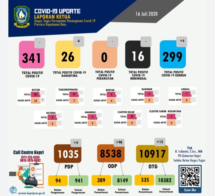 BATAM, – – Di Kota Batam, Provinsi Kepri, terhitung pasien positif telah terjangkit Covid-19 yaitu sebanyak 267 orang hingga Kamis. Namun dari 267 itu tersisa 24 pasien yang masih dirawat. Gugus Tugas Percepatan Penanganan Covid-19 Kota Batam terus menggesa agar semua pasien segera sembuh.
