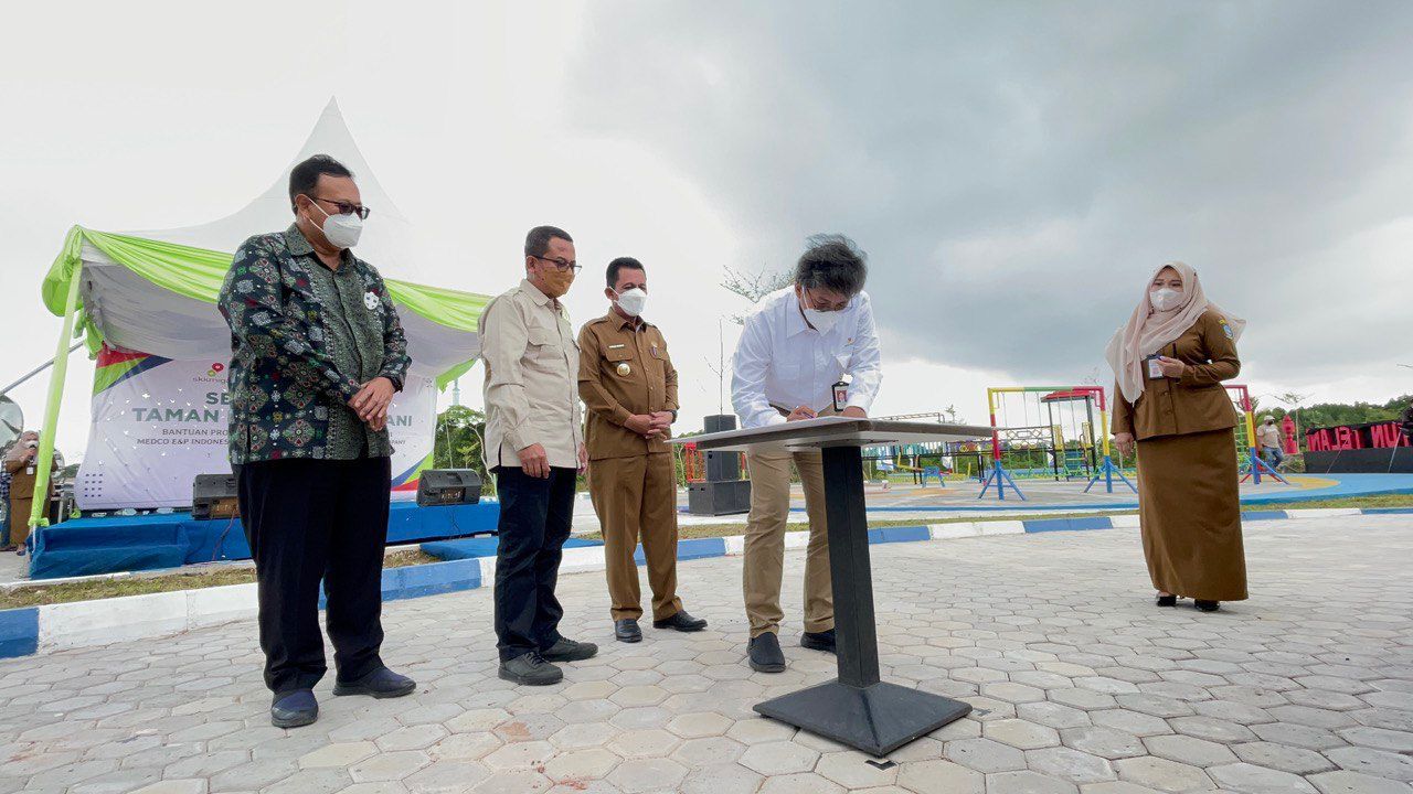 Selain itu, VP Relations & Security KKKS Medco E&P Indonesia Arif Rinaldi  mengungkapkan bahwa bantuan pembangunan taman ini merupakan salah satu Bantuan Program Pengembangan Masyarakat dana CSR dari SKK Migas pada tahun 2021.