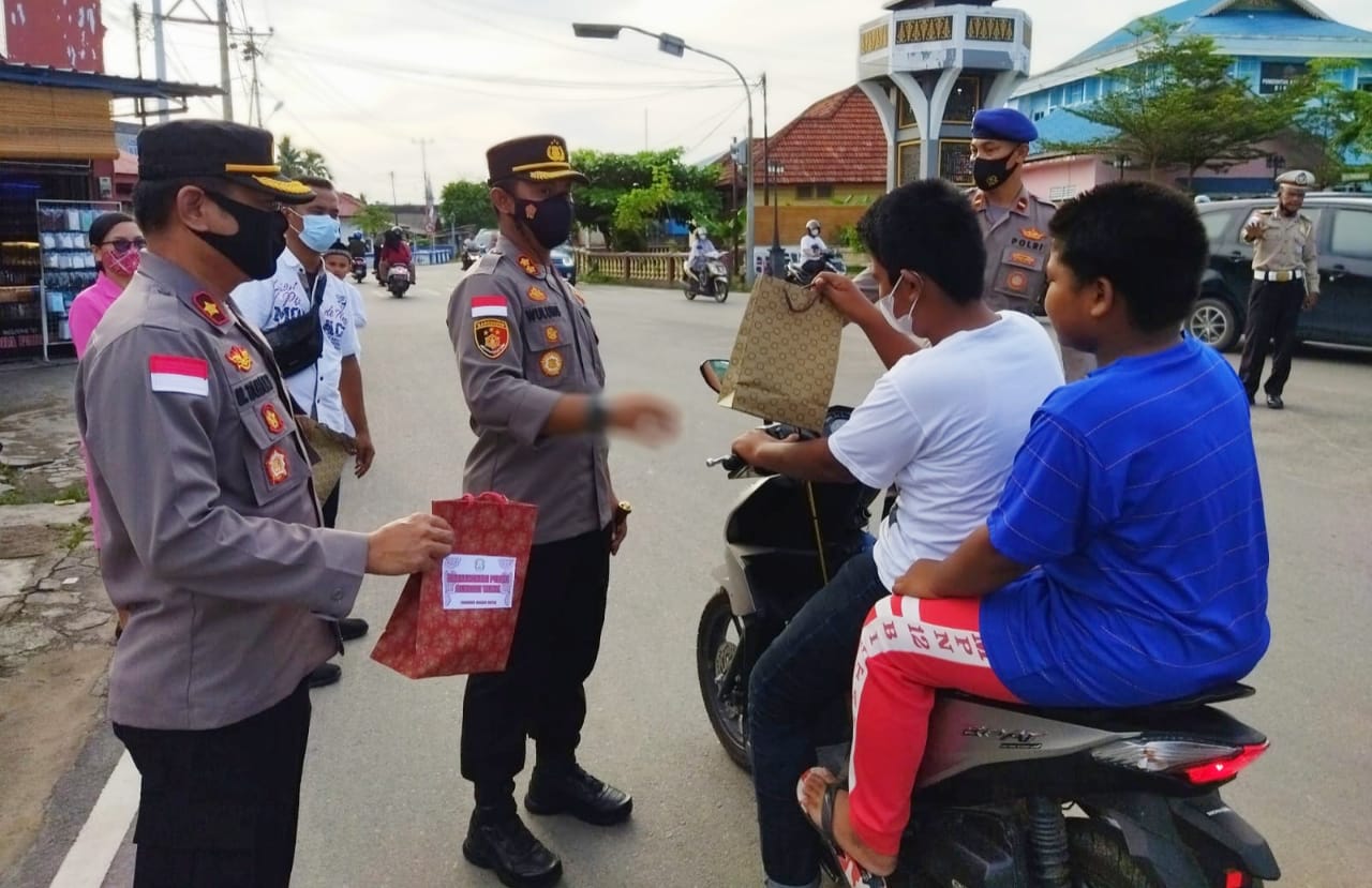 Bagi-bagi takjil dipimpin langsung oleh Kapolres Bintan AKBP Tidar Wulung Dahono, didampingi seluruh Pejabat Utama Polres Bintan serta Bhayangkari Cabang Bintan.