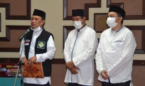 Ketua Dewan Syuro Datok H. Hardi Slamet Hood, Ph.D. (pegang map) membacakan Pengukuhan Forsil PKM Kota Batam