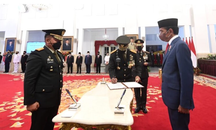 Dalam pelantikan tersebut, Presiden Jokowi mengambil sumpah jabatan Dudung Abdurachman sebagai KSAD.