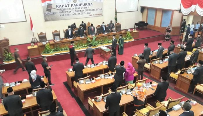 DPRD Kota Batam menggelar rapat paripurna pengucapan sumpah janji pergantian antara waktu (PAW) Pimpinan di lembaga tersebut dengan sisa masa jabatan 2019-2024, Rabu (17/2/2021).