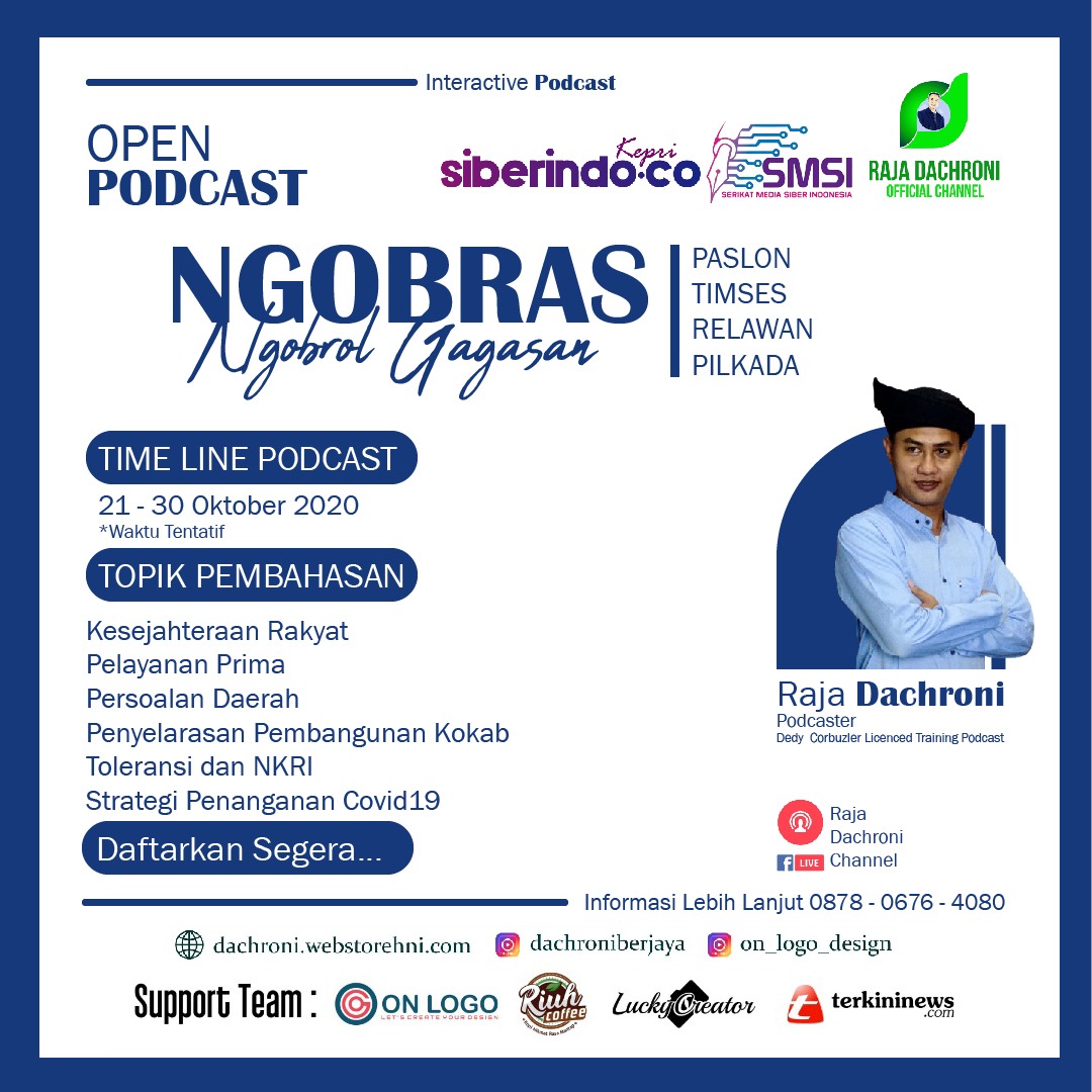 “Di era digital ini semua serba mudah, untuk podcast sama saya nggak mesti harus datang ke studio bisa IG live atau zoom atau yang lainnya, untuk menyebarluaskan perbincangan agar dilihat orang banyak juga bisa di optimalkan lewat fb ads atau IG ads atau di share ke grup-grup efeknya akan lebih besar dan pesannya akan terspampaikan karena mayoritas penduduk itu sekarang lebih sering dengan gawainya bangun tidur hingga tidur lagi gawai seolah tak terpisahkan,” tutup Raja Dachroni.