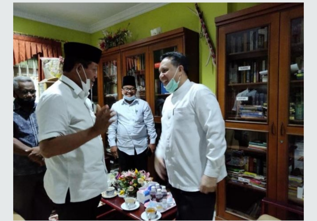 BATAM – Calon Gubernur Kepri nomor urut 2, Isdianto disela kesibukannya mengunjungi rumah anggota Dewan Perwakilan Daerah Republik Indonesia (DPD-RI) asal Provinsi Kepri, Ria Saptarika di Perumahan Tiban Regency, Kecamatan Sekupang, Kota Batam, Rabu, (18/11/2020) sore.