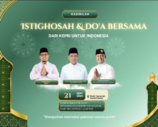 BATAM – Wakil Ketua III DPRD Provinsi Kepulauan Riau, *H. Bahktiar, Lc, MA, menginisiasi kegiatan Istighosah dan Doa Bersama untuk bangsa Indonesia. Kegiatan ini akan diselenggarakan pada Ahad, 21 September 2025, bertempat di Masjid Agung Raja Hamidah, Batam Center, mulai pukul 07.30 WIB.