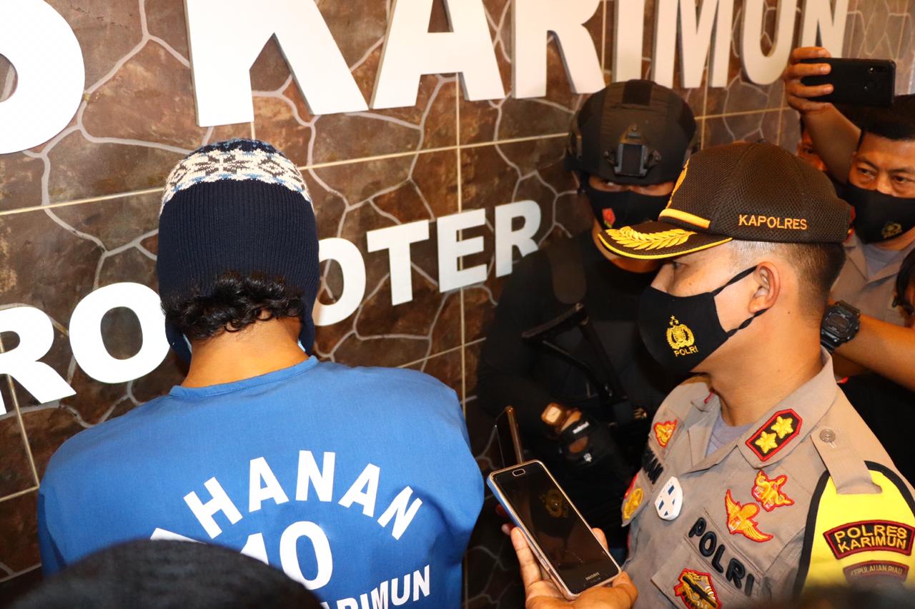 Kapolres Karimun AKBP Muhammad Adenan didampingi Kasat Narkoba Polres Karimun AKP Rayendra Arga Prayana mengatakan, dari tangan tersangka polisi menemukan dua paket barang bukti berupa narkotika jenis sabu-sabu seberat 2.145,19 gram yang dibungkus menggunakan plastik bening kemasan teh cina merk guanyinwang.