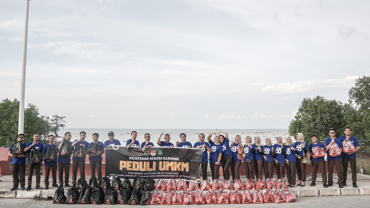 Karimun – Sambut Hari Bhakti Adhyaksa (HBA) ke-63, Kejaksaan Negeri (Kejari) Karimun membagikan 63 paket sembako kepada pelaku UMKM lewat kegiatan bertajuk “Kejari Karimun Peduli UMKM”.