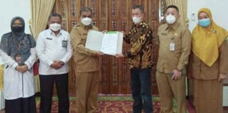 KARIMUN – Bupati Karimun Aunur Rafiq serahkan sertifikat halal kepada pelaku UMKM (Usaha Mikro Kecil Menengah) Kabupaten Karimun Provinsi Kepri di Rumah Dinas Bupati, Senin (21/2/2022).